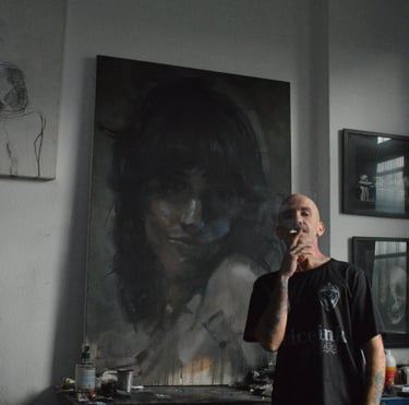 His art pulsates in works that blend impressionism and realism in bold strokes, telling stories about love, passion, music, movies, nightlife and everyday life.
