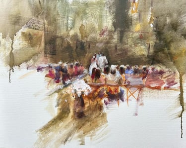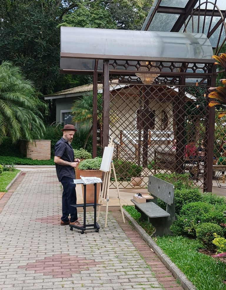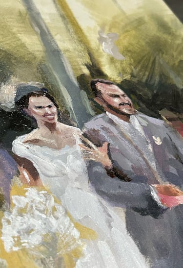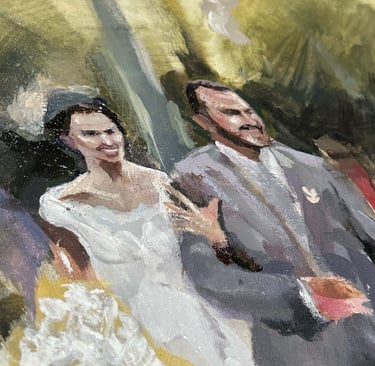 Enquanto tudo acontece – os votos, os olhares, os brindes – eu estarei ali, pintando esse momento em tempo real. Mais do que um quadro, é uma lembrança única do seu casamento, criada no próprio dia e com toda a atmosfera que o torna especial.